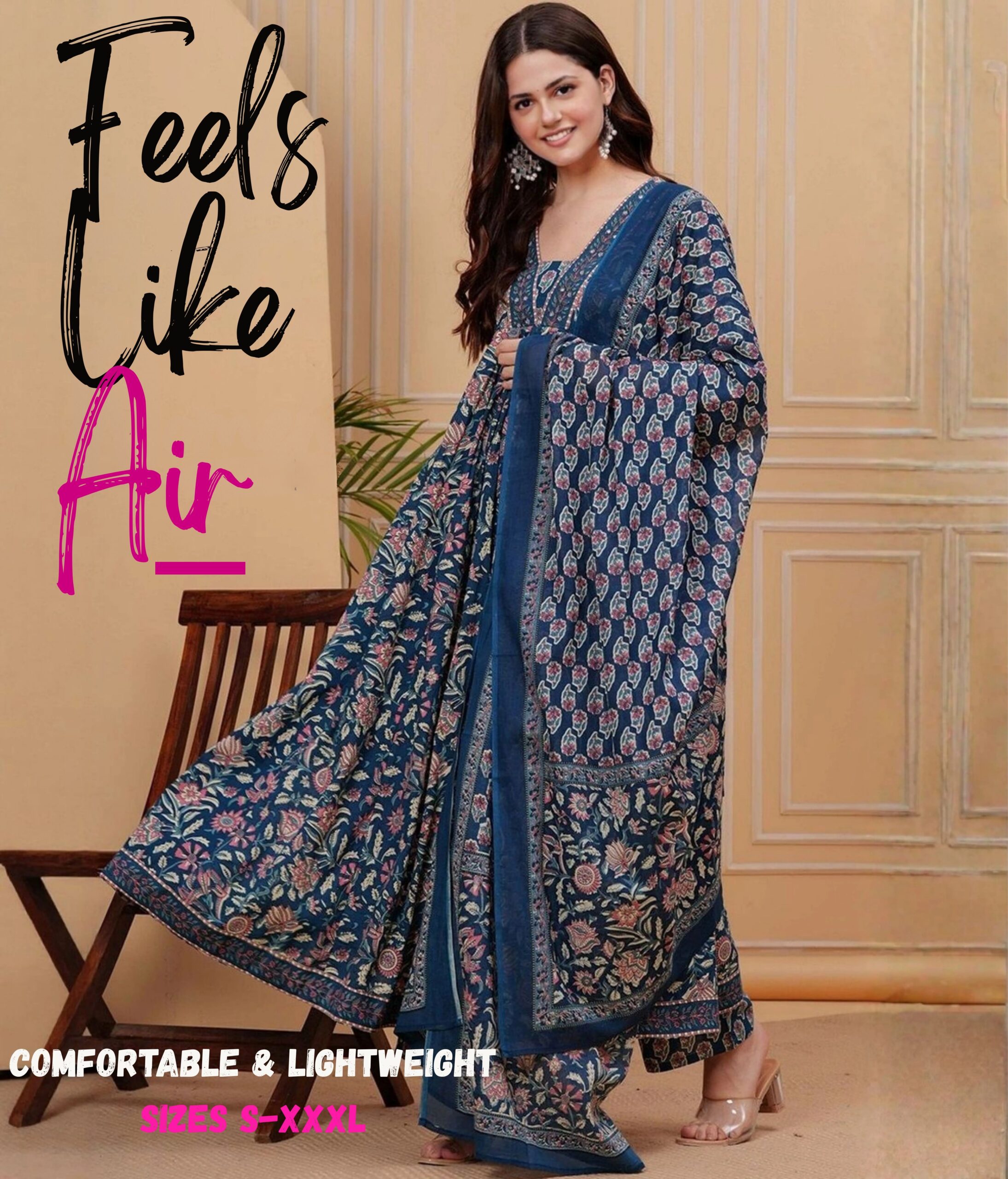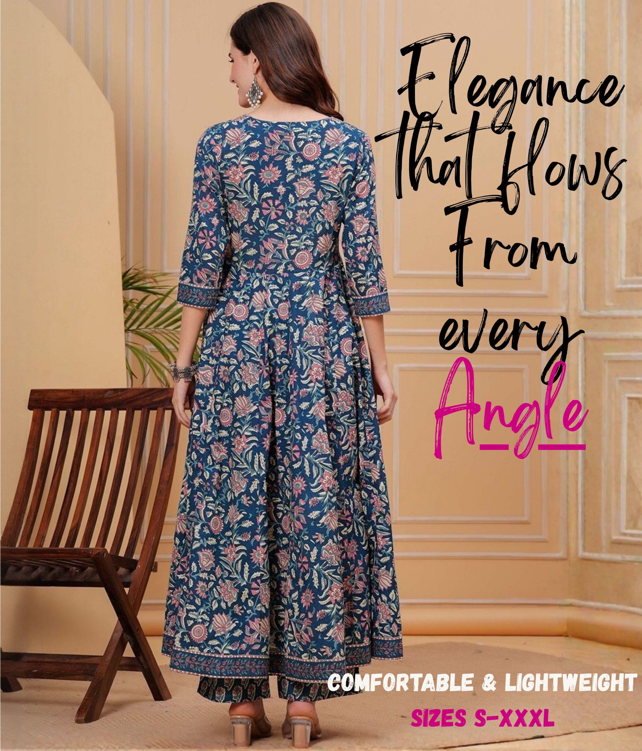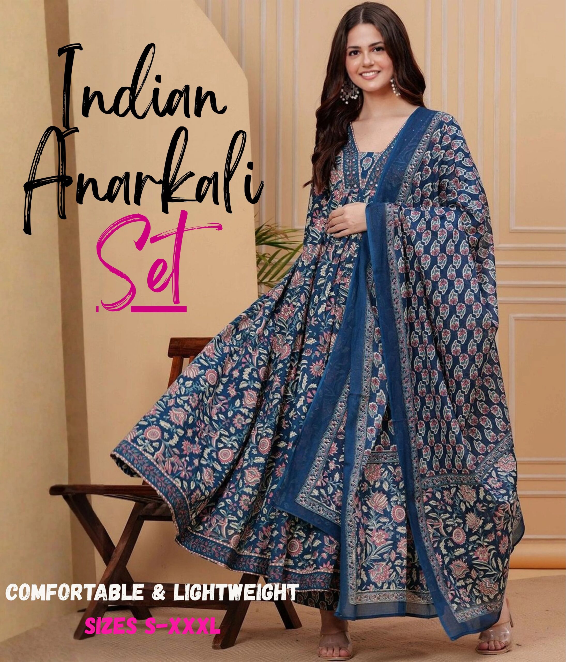 - READY-TO-WEAR ANARKALI DRESS – True to size S-XXL fits Punjabi to South Indian body types. Model (5’6″) wears M. Pair with jhumkas + bangles for Diwali/mehndi events.